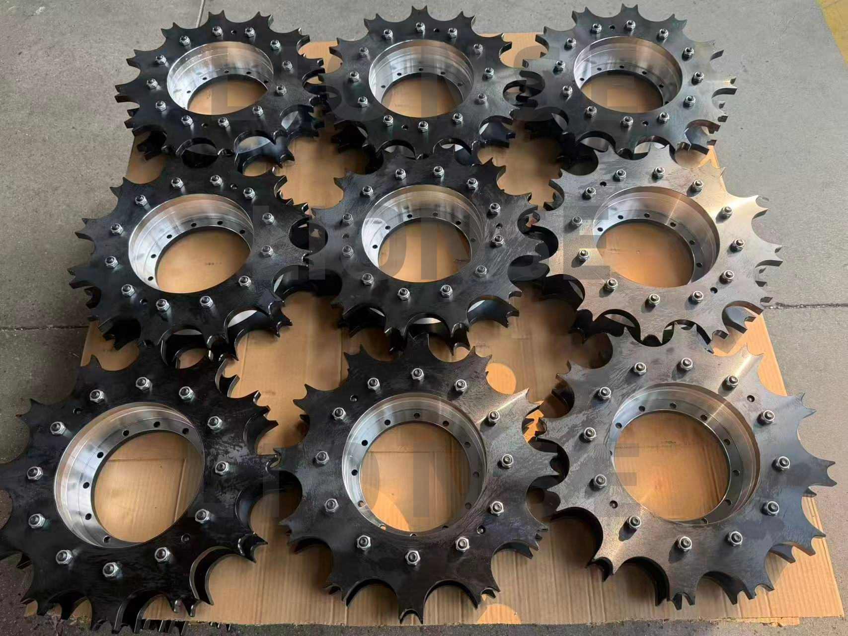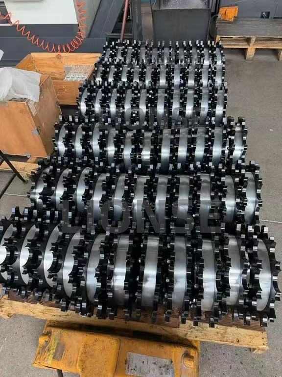 Về mặt quy trình sản xuất, trước hết, thép bị biến dạng dẻo dưới áp suất cao bằng cách rèn chính xác, nhằm cải thiện kết cấu bên trong, loại bỏ các khuyết tật, nâng cao mật độ và tính chất cơ học của các bộ phận; Sau đó, tiến hành xử lý nhiệt khoa học, tôi để đạt được độ cứng cao đồng đều trên bề mặt và bên trong thép, đồng thời ủ để loại bỏ ứng suất tôi và điều chỉnh độ dẻo dai, đạt được sự cân bằng tối ưu giữa độ bền và độ dẻo. Cuối cùng, máy công cụ CNC có độ chính xác cao được sử dụng để thực hiện tiện, phay, khoan và xử lý khác trên phôi bánh xe được xử lý nhiệt, đồng thời kiểm soát chặt chẽ độ chính xác để đảm bảo dung sai kích thước và dung sai vị trí hình dạng đáp ứng tiêu chuẩn cao, đáp ứng các yêu cầu lắp ráp có độ chính xác cao của bánh xích và trục truyền động, đồng thời đảm bảo độ chính xác về kích thước và độ nhám bề mặt tốt.